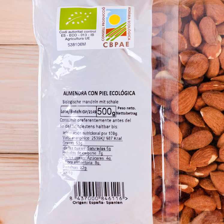 Almendras ecológicas crudas con piel Camp Mallorquí 500gr
